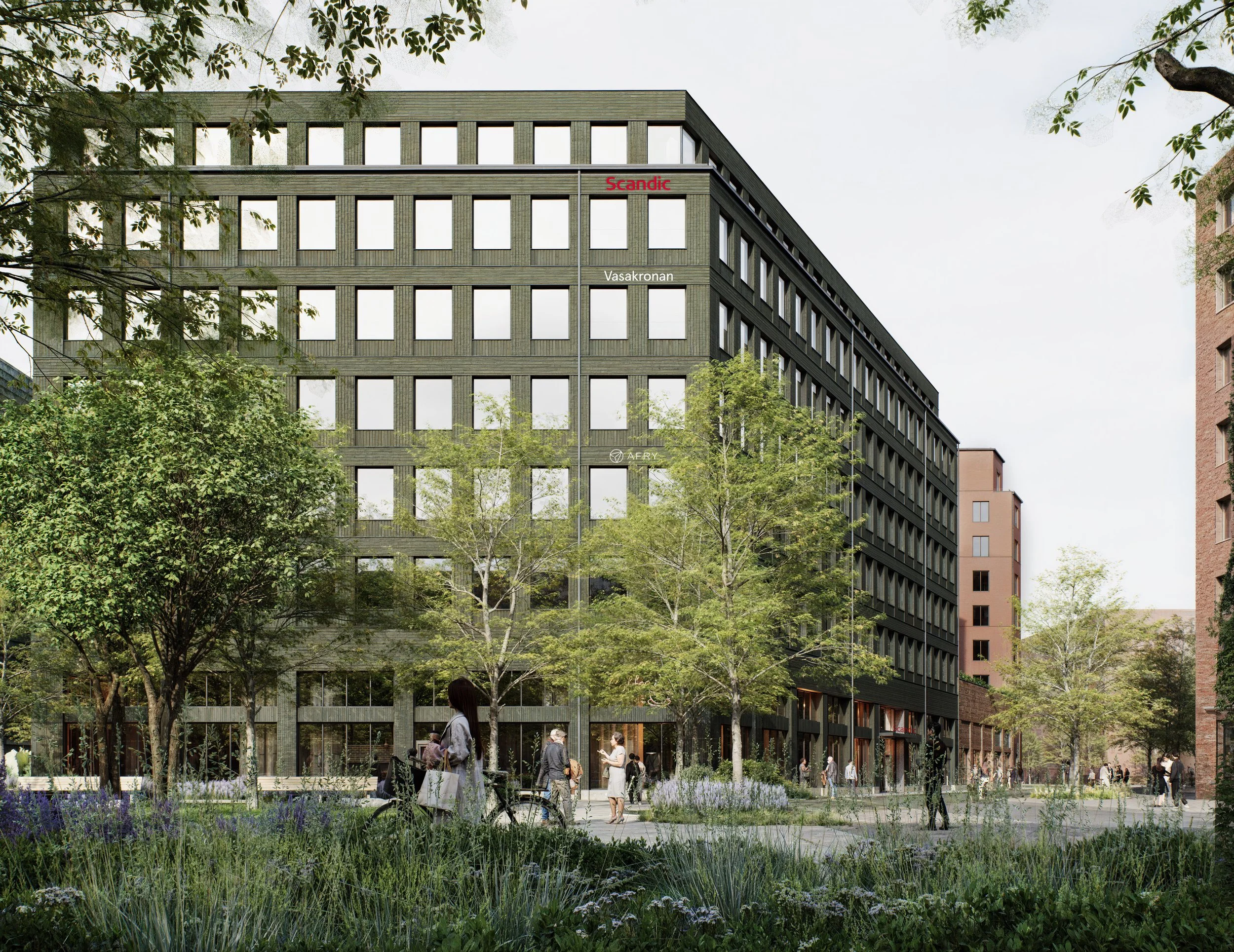 Vi tackar Peab för förtroendet att leverera utfackningsväggar till Vasakronans Kv. Hugin, som en del av Södra City i Uppsala, ritat av Arkitekterna Krook & Tjäder. Åsbo Hus levererar kompletta utfackningsväggar med fabriksmonterad fasad av brandklassad och pigmenterad thermowood till kontorsdelen. Här säkerställs redan från fabrik att typgodkännande för SP Fire 105 uppfylls samt att fasaden är fuktsäker såväl under montaget som ur ett förvaltningsperspektiv. Även till hotelldelen levererar Åsbo Hus utfackningsväggarna kompletta med fönster, fasadplåtar etc., men här ersätts träfasaden av putsbärarskiva från fabrik. Projektets krav på ett lågt koldioxidavtryck i kombination med hög detaljkvalitet, passar väl ihop med Åsbo Hus sätt att arbeta med såväl hållbarhet som kundanpassning.